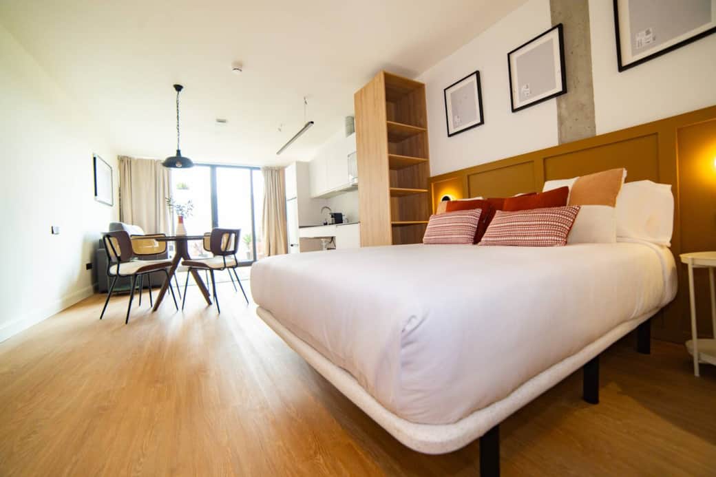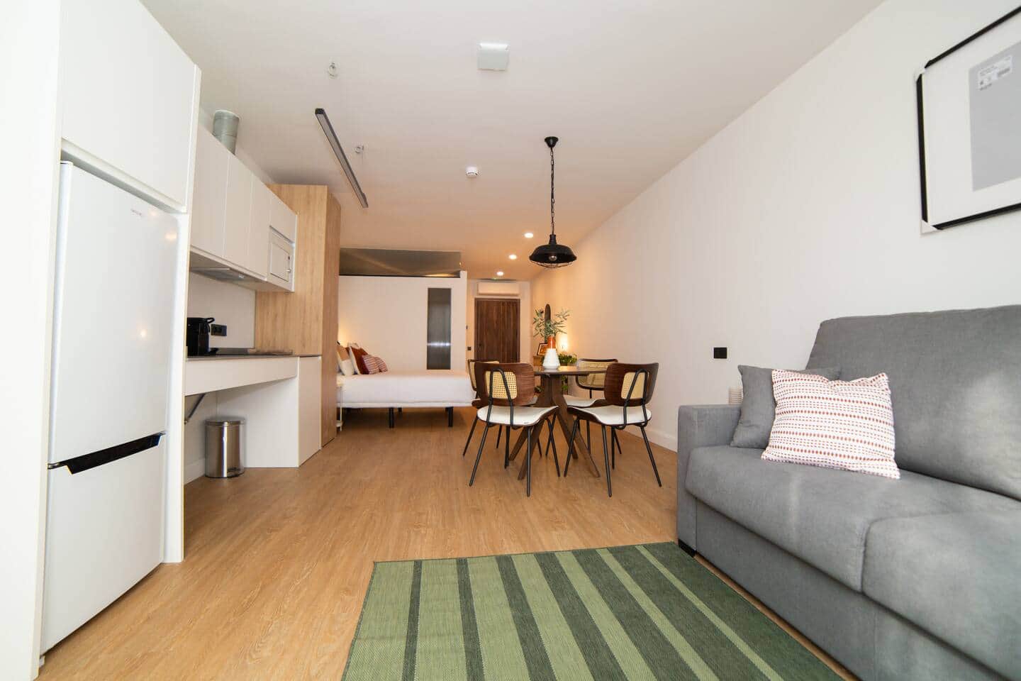 Ubicado en una calle peatonal y tranquila, estarás en el corazón de Valencia, cerca de los principales atractivos pero sin ruido. Disfruta de una terraza privada, WiFi rápido, aire acondicionado y cocina equipada.Nuestro alojamiento combina comodidad, privacidad y ubicación ideal para una estancia perfecta. ¡Te esperamos!. 🛏️ Comodidad y Espacio: ✔ Cama doble + Sofá cama doble ✔ Baño amplio con calefacción, secador de pelo, jabón, champú y gel de ducha. ✔ Cocina totalmente equipada: microondas, nevera, congelador, cafetera Nespresso, licuadora y todo lo necesario para cocinar. ✔ Mesa de comedor ideal para comer o trabajar 📺 Entretenimiento & Conectividad: ✔ WiFi rápido y TV con Internet. ✔ Aire acondicionado frío/calor. 🌇 Terraza Privada para Relajarte ✔ Con mesa y sillas, perfecta para disfrutar del clima valenciano 🔑 Auto Check-in para mayor independencia y privacidad. ✔¡Disfruta de Valencia con total comodidad en este increíble apartamento! Nuestras acogedoras áreas comunes cuentan con cómodos sofás, ideales para relajarte mientras esperas o disfrutas de un momento de descanso. La decoración combina elegancia y calidez, con detalles cuidadosamente seleccionados para crear un ambiente moderno y acogedor. Un espacio perfecto para desconectar, socializar o simplemente disfrutar de la tranquilidad.